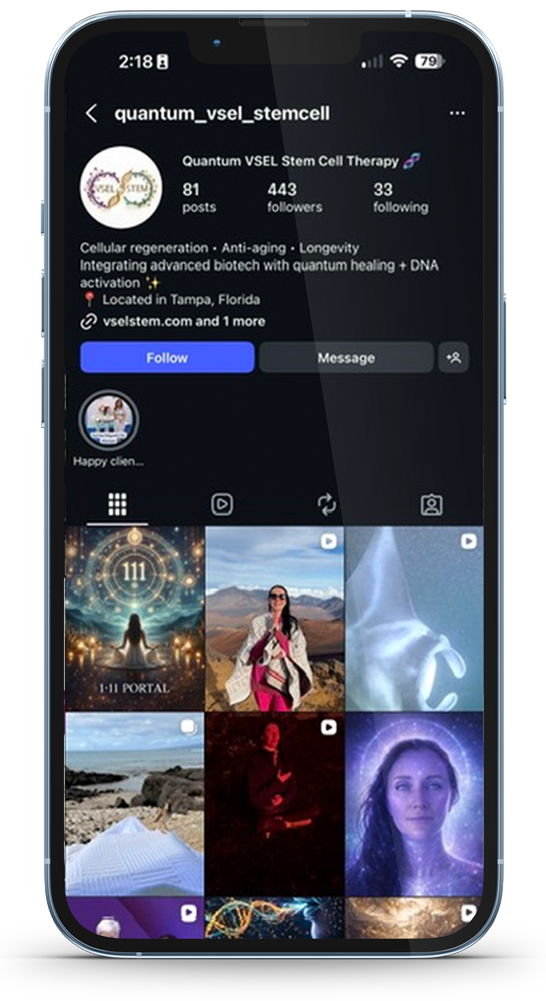 By combining VSEL Stem Cell + PRP therapy with supportive energetic alignment techniques, we help encourage repair, balance, and renewal from the inside out.